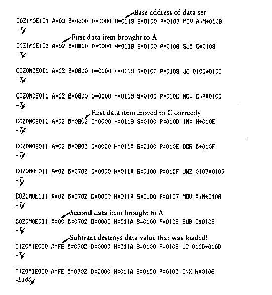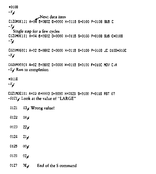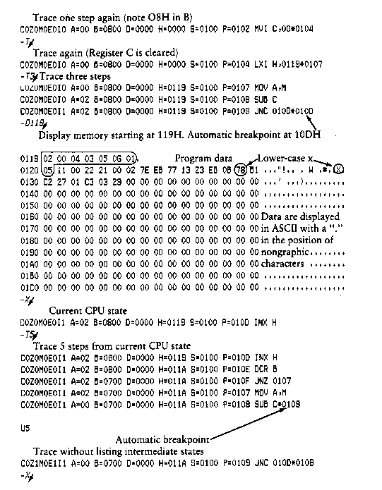 where the I and R commands set up and read the specified program to test. See the explanation of the I and R commands below for exact details.