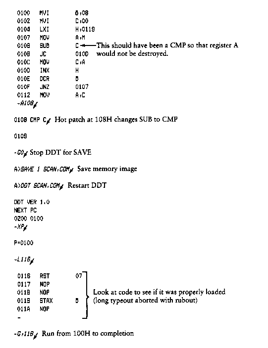 At any point in the debug run, you can stop execution of DDT by using either a CTRL-C or G0 (jump to location 0000H) and save the current memory image by using a SAVE command of the form: